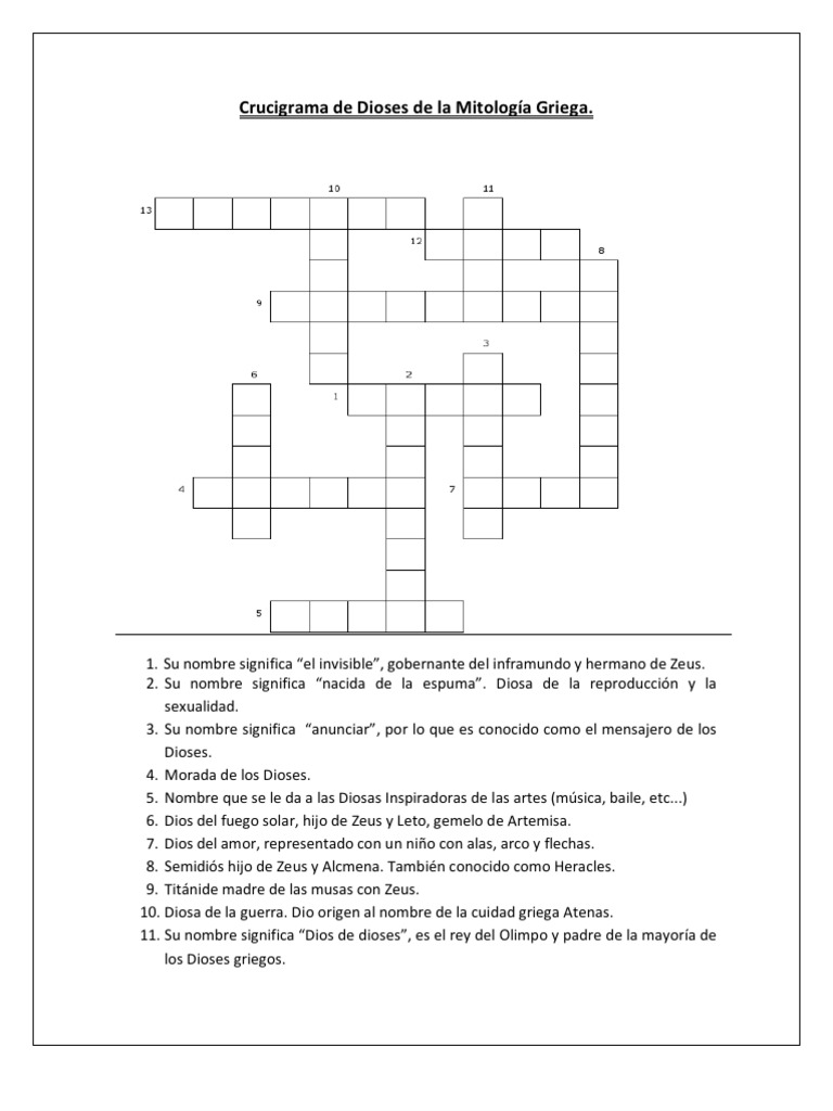 Mucha gente habla de los crucigramas. Usando toda la información recolectada, resolveremos la definición del crucigrama “letra griega” y obtendremos la respuesta correcta. Crucigrama de dioses de la mitologa griega.